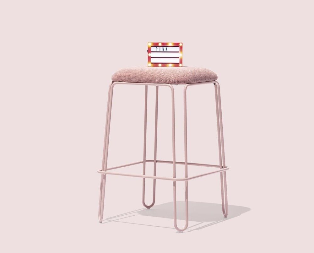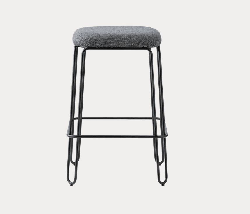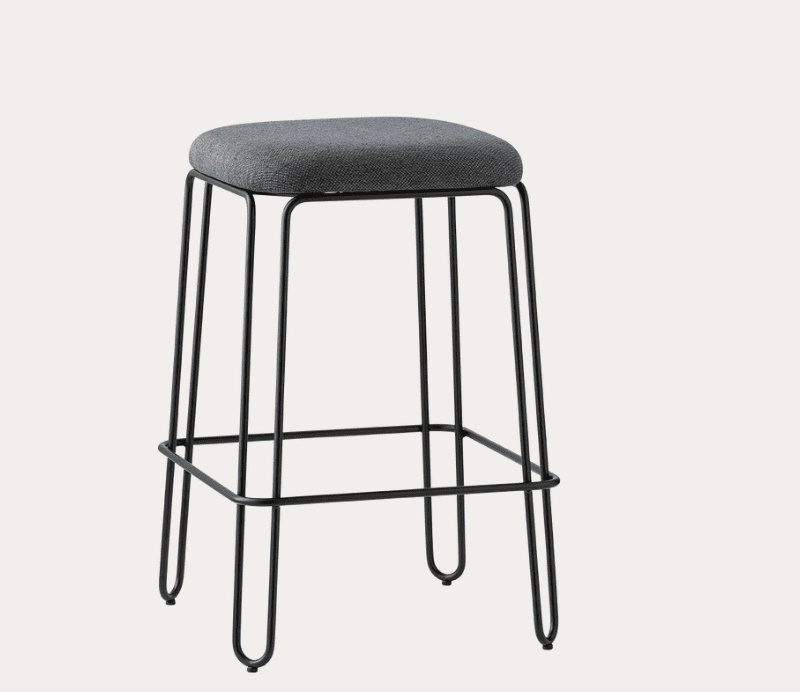 CB/2101 STULLE Stool with structure in curved metal rod and wooden seat covered in rubber and fixed upholstery which is available at ReModern living.