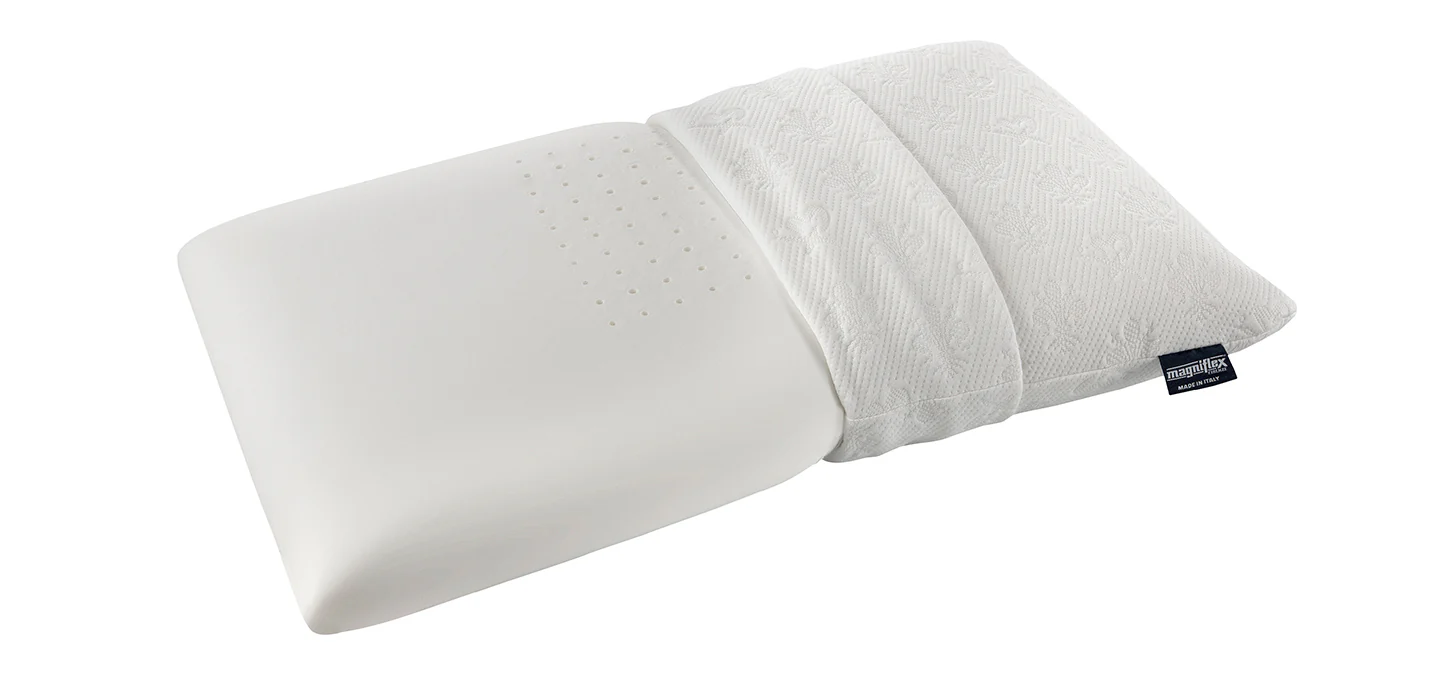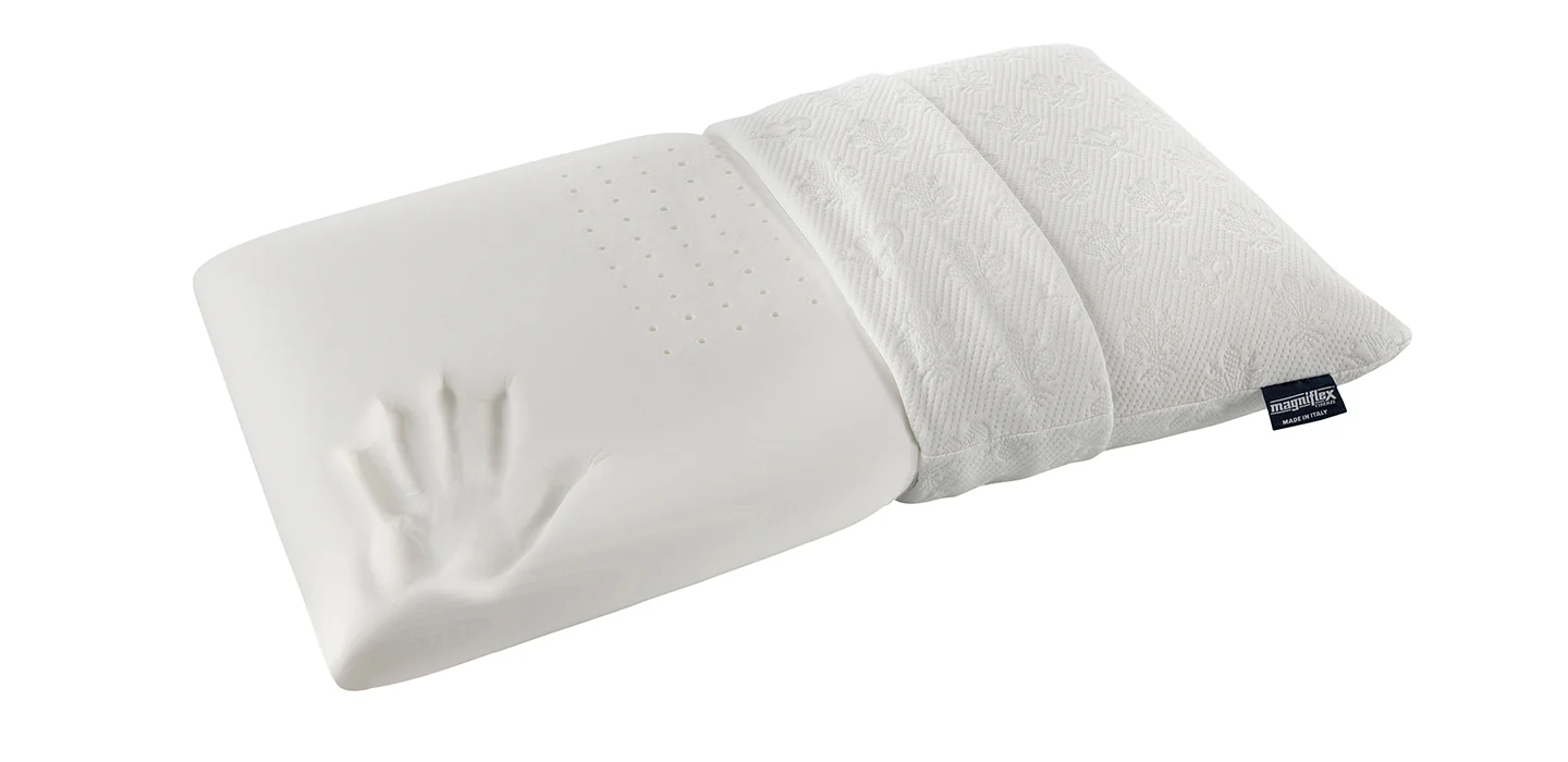 At the center is Memoform foam, one of Magniflex’s most advanced materials. It reacts to your body’s weight and shape, providing personalized support for your head, neck, and shoulders. As it adapts, it helps your spine stay aligned—reducing pressure and improving sleep quality.