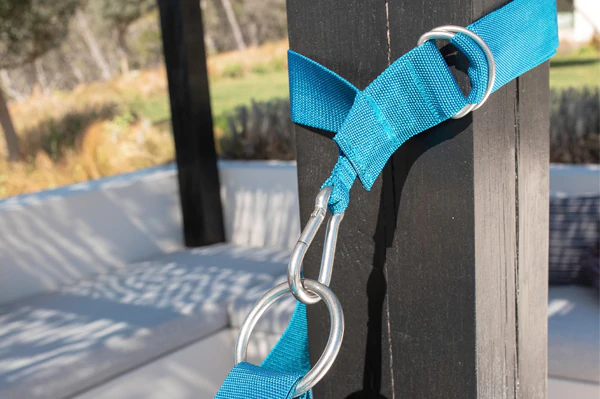 Because of its size, the Headdepleck hammock can be used by two or three people, with a maximum load capacity of 330 lbs. The hammock is made of durable polyester, which is known for its robust water- and dirt-repellent properties. Therefore, the Headdepleck hammock is suitable for both indoor and outdoor use.