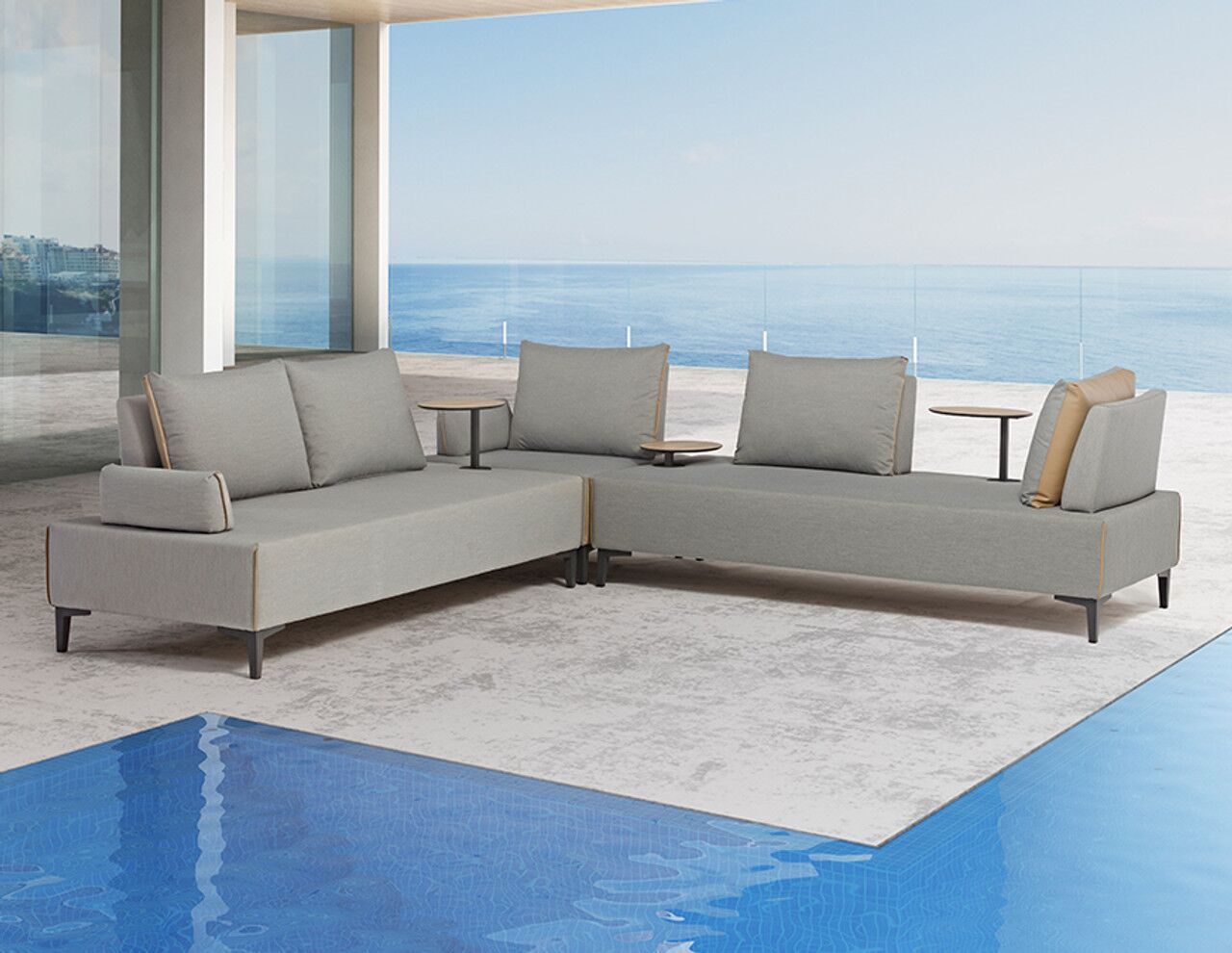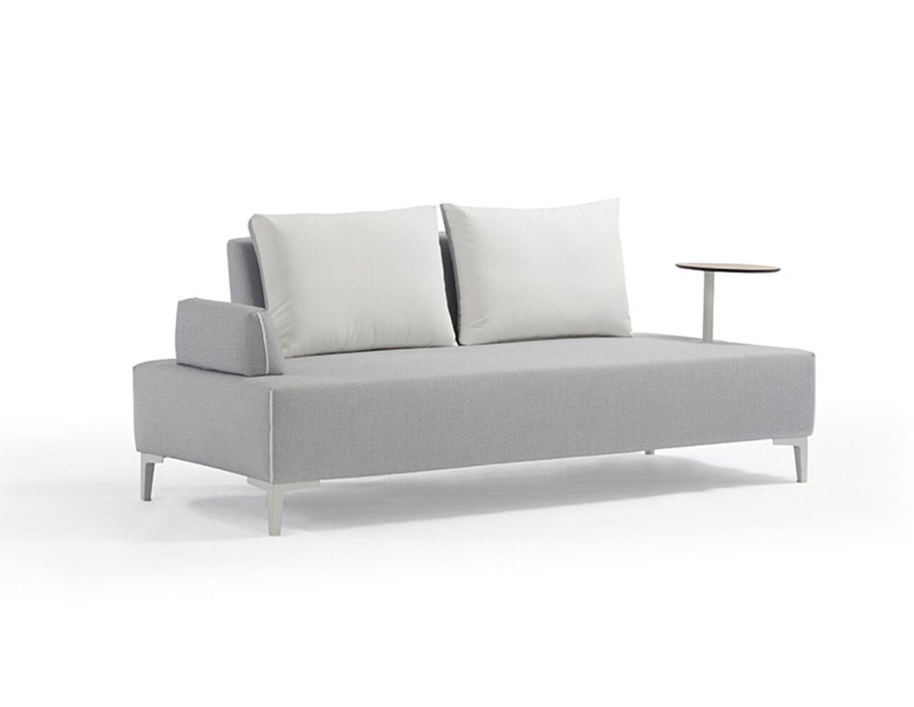 The Flexi Multi-Functional Outdoor Sofa by Couture Jardin adapts to your needs with movable backrests, armrest, and tray. Comfortable, durable, and perfect for small spaces.