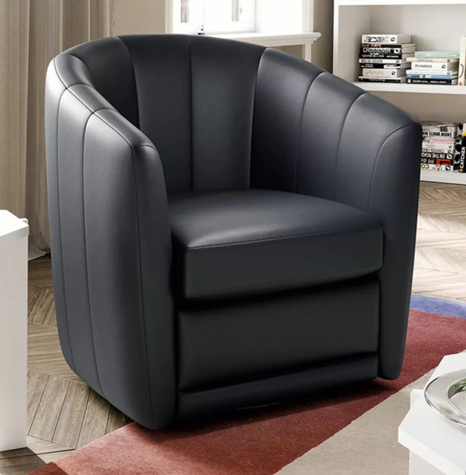 Giada B596 By Natuzzi Editions The perfect accent chair for any seating space, the Giada B596 Top Grain Leather Barrel Chair (Made to order leathers) is a modern-style barrel chair that envelops its occupants with plush comfort.