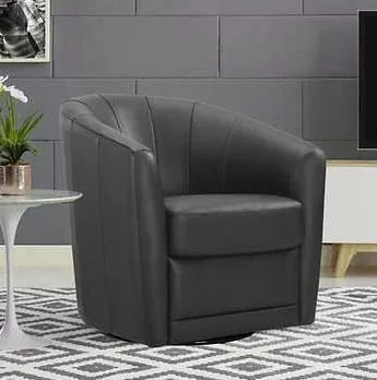 The perfect accent chair for any seating space, the Giada B596 Top Grain Leather Barrel Chair (Made to order leathers) is a modern-style barrel chair that envelops its occupants with plush comfort. The Giada B596 Chair is upholstered from top to bottom in 100 percent top grain leather, which is soft to the touch. This sort of leather is naturally only going to get better with age, providing you with a chair that will never overstay its welcome. The seat cushion is thick and plush, giving you a nice place to sink down into. The rounded back of the chair turns into arms that swoop down to rest on either side of the person sitting. The Giada features a swivel mechanism on the bottom that gives the ability to turn from side to side as needed for viewing or conversation.