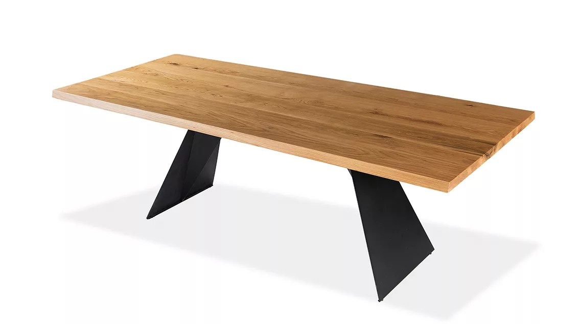 Available with 2.25 “solid wood top: acacia or bevelled acacia with a matte finish.