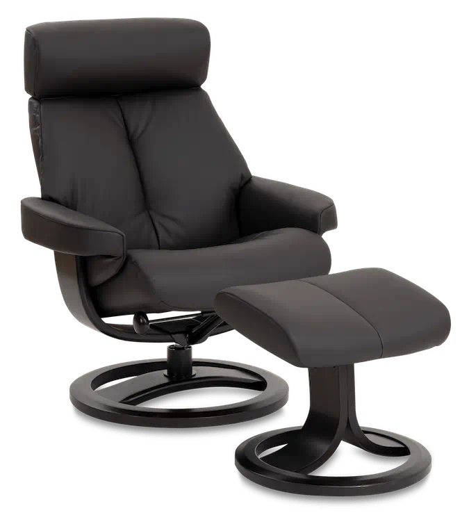 The IMG Nordic 85 Recliner delivers classic Norwegian comfort with Cold-Cure foam cushioning, 360° swivel, and an ergonomic freestanding footstool. With multiple sizes and customizable finishes, it’s designed for style and personalized support.