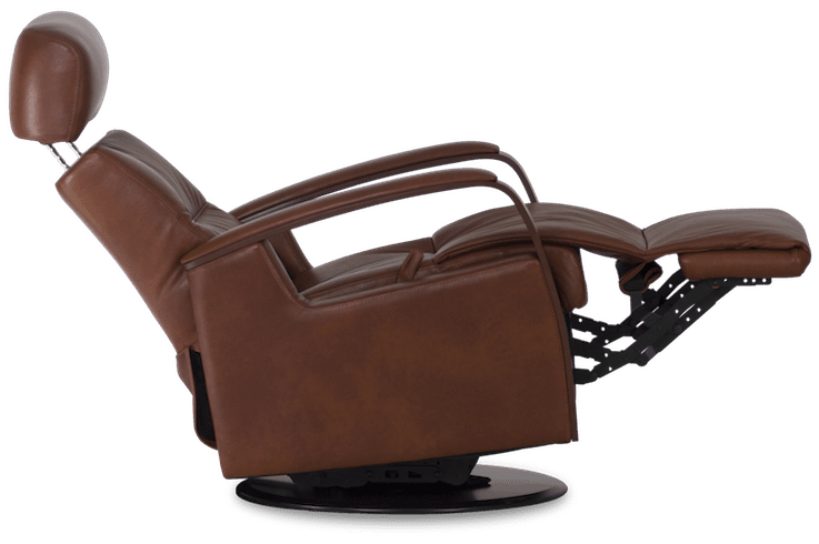 The Peak Recliner includes five essential comfort functions: reclining backrest, integrated footrest, adjustable head and neck support, swivel base, and gliding/rocking motion. You can lock the rocking function with an optional mechanism. Available in two sizes, the chair adapts perfectly to your needs.