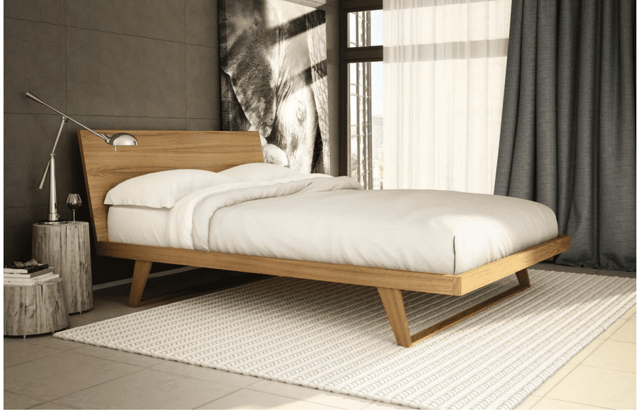 The Malta Wooden Bed by Mobican features a minimalist wood headboard, 12.5″ clearance, and a supportive posture board. Available in Queen, King, and California King sizes.