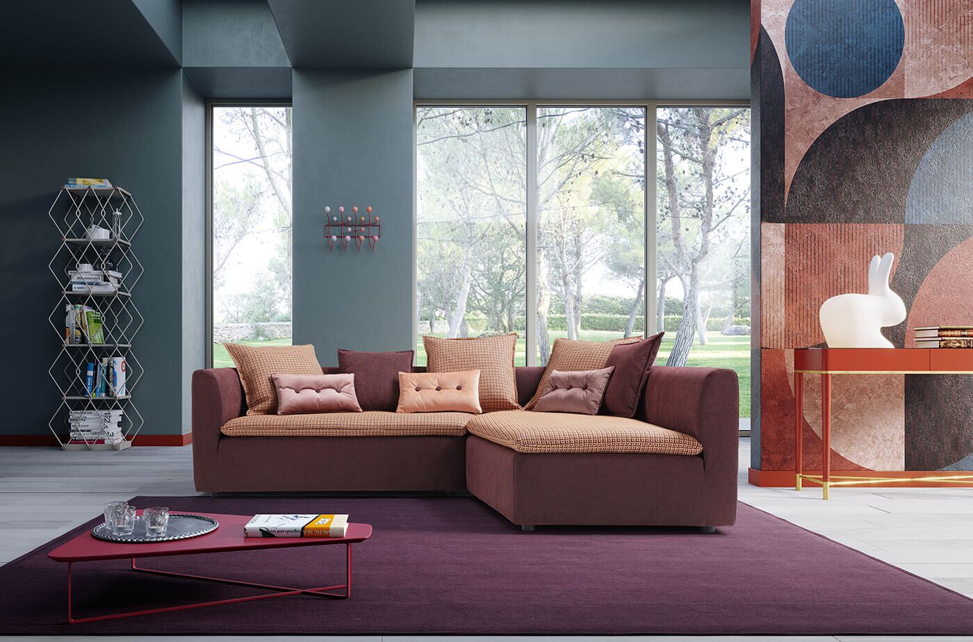 Oriental and arabesque NARA is the new sofa Egoitaliano simple in shape, eccentric and supercolored in style. Characterized by large overlapping cushions of different colors and sizes, NARA is a sofa with closed base designed as an island of peace where you can recharge your energy and dedicate small moments of relaxation.
