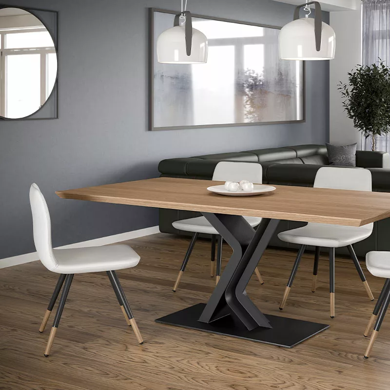 The Race Dining Table’s contemporary design is both stylish and functional. The light walnut top is perfect for showcasing beautiful tableware and adds a touch of modernity to the dining experience. Additionally, the table’s metal base features a unique design that adds visual interest and complements any dining room décor.