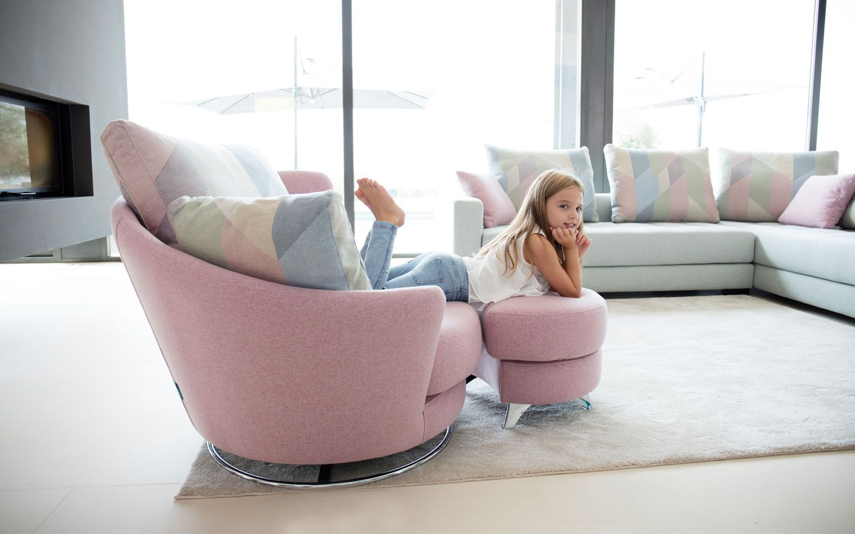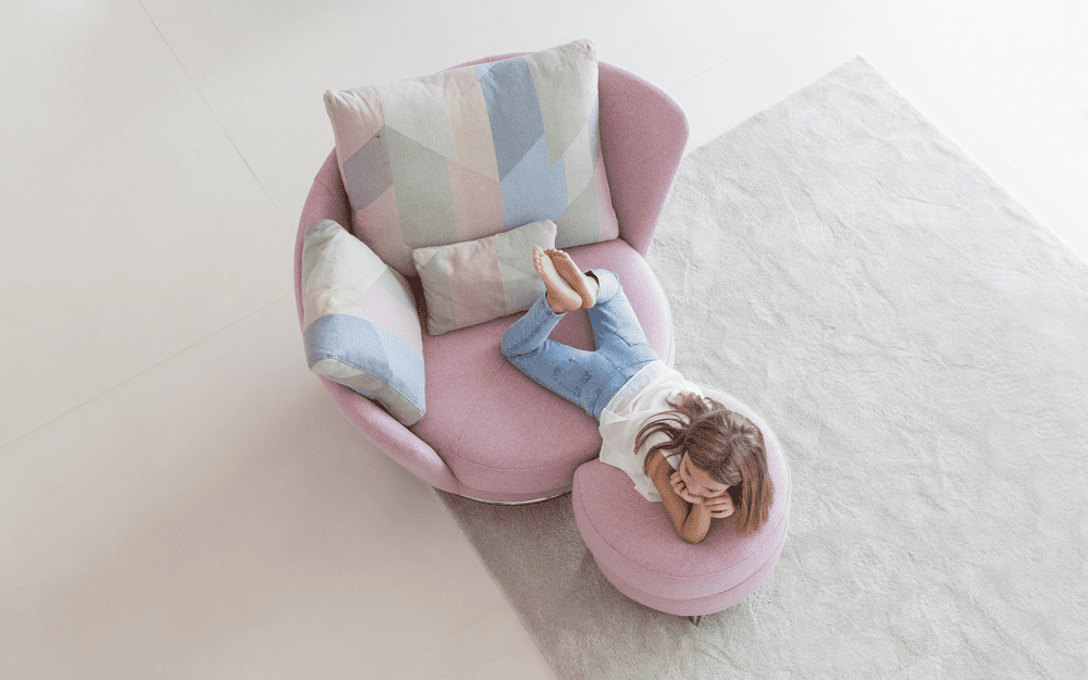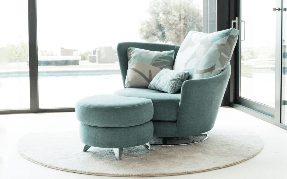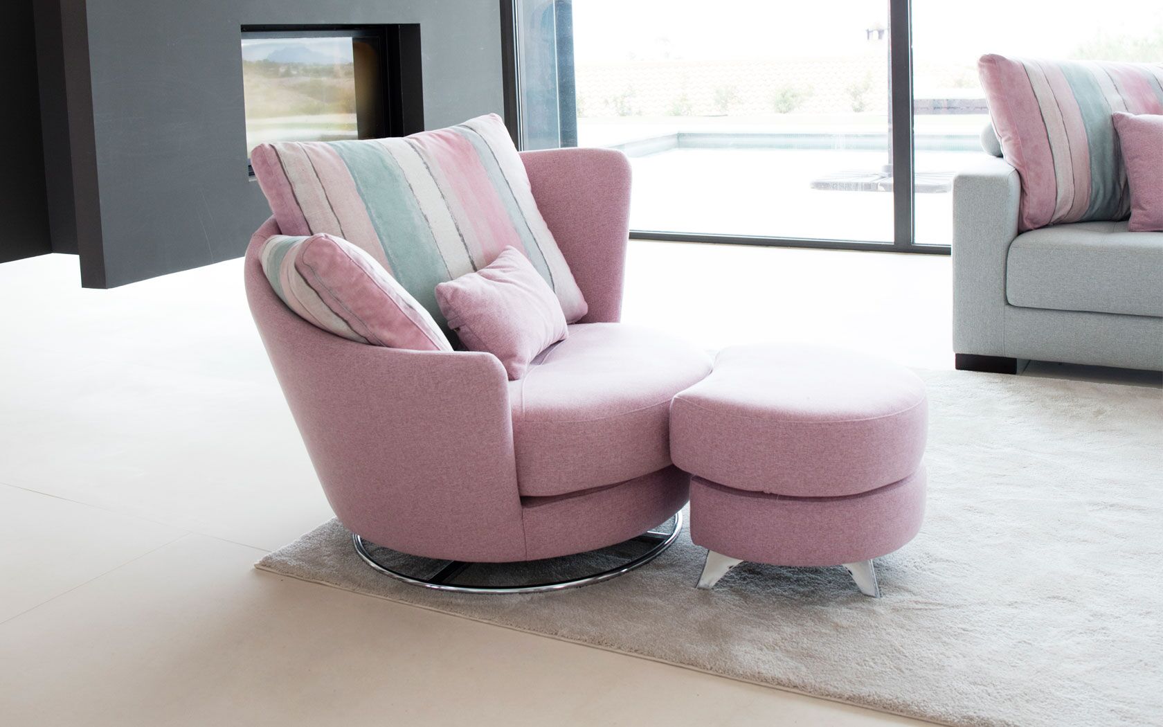 Roxane is an armchair with a very special design, where you will enjoy unforgettable moments. Its curved back creates a peaceful and quiet atmosphere that allows you to enjoy your leisure moments and forget about everything else. The swivel base and the footstool provide a great comfort.