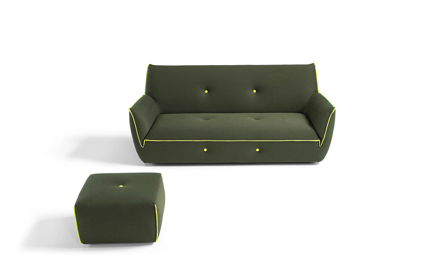 YUKI provides you with a real explosion of color, a product line covered with a stretchable fabric with fun lycra details. Play on a pop palette, bold and irreverent, the oxymoric shapes of YUKI, soft and edgy at the same time, shape the living room as a creative space that is not afraid to show itself in its creativity, originality and excess of color. Gem of this collection is the armchair with slim high feet covered in colorful lycra.
